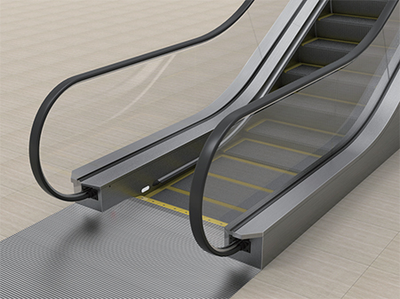 梯路導軌限位結構,導正精度高,確保梯級長期穩(wěn)定、精準運行,大大降低扶梯運行噪音。